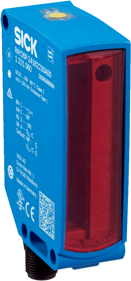 Fotoandur Refl. RAY26 (BGS), Sn=0..3000mm, NPN/PNP, Light/Dark, IP67, pistik M12 4-pin, SICK