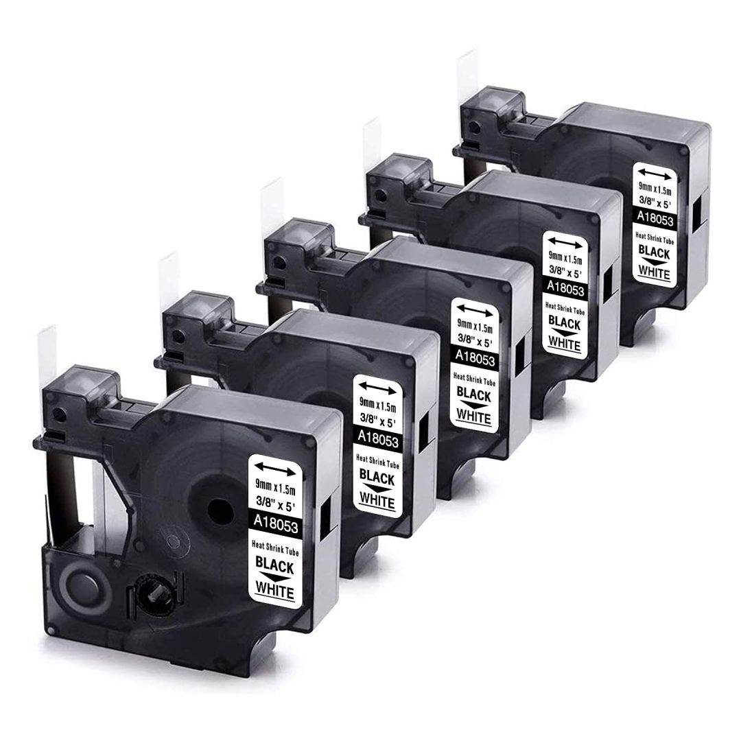 Kleepkirjalint-termokahanev rüüs 9mm/1.5m must/valgel Dymo analoog