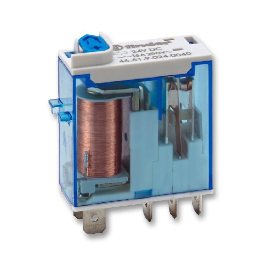 Minirelee 46.61, 1CO, 16A, 12VDC (40mA), LED+TEST+ meh.ind.,+diood, pesa 97 seeria, Finder