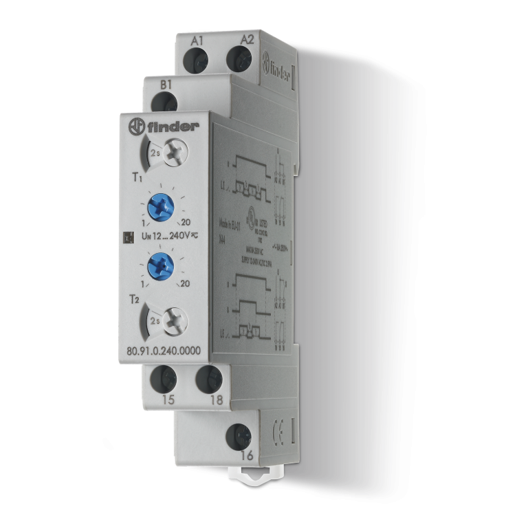 Moodulaegrelee 80.91, asümmeetriline ON/OFF, 1CO 0.1s-24h 12-240VAC/DC, Finder