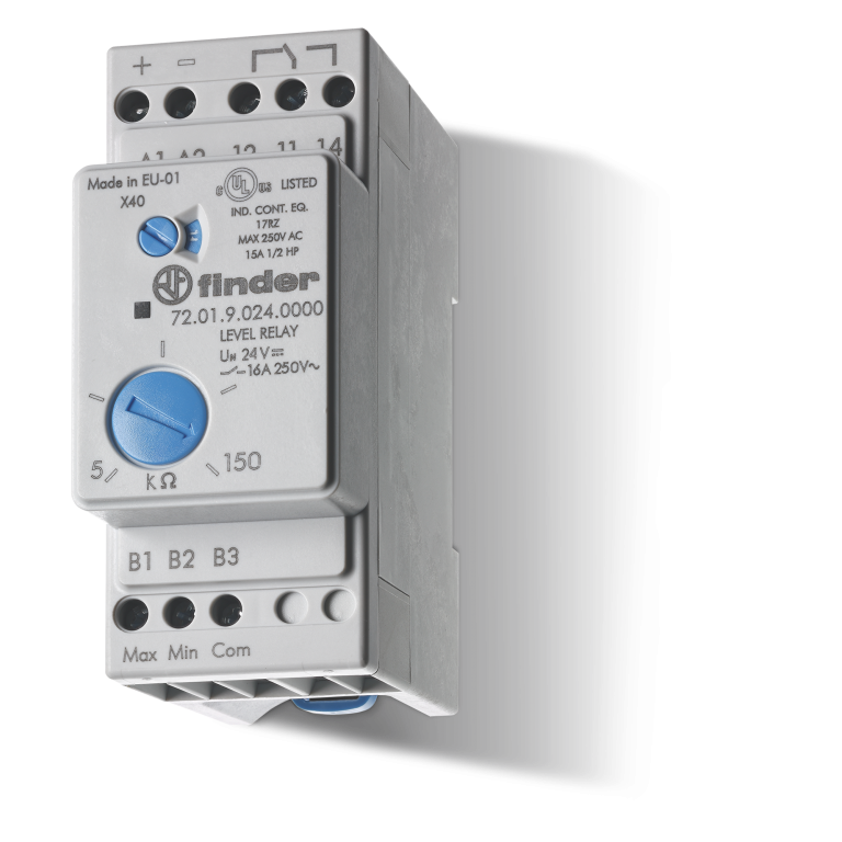 Nivoo kontrollirelee 72, 1CO, tundlikkus 5-150kΩ, viivis 0.5-7s, 240VAC, Finder
