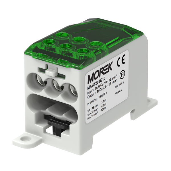 Voolujaotusplokk OJL200A, roheline, sisse 1xAl/Cu70, välja 6xCu 16mm², Morek