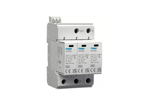 Liigpingepiirik, 3P, TNC, T1+T2, 12.5/37.5kA, Hager