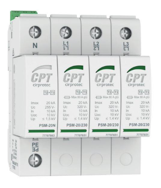 Liigpingepiirik PSM4-20/400 TT SPD tüüp 2, (C) (3P+N)+ abikontakt Iimp 20kA , Cirprotec