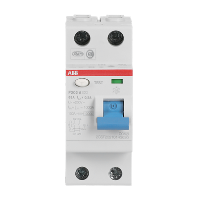 Rikkevoolukaitse F202A, 2P, 63A, 300mA, A, ABB