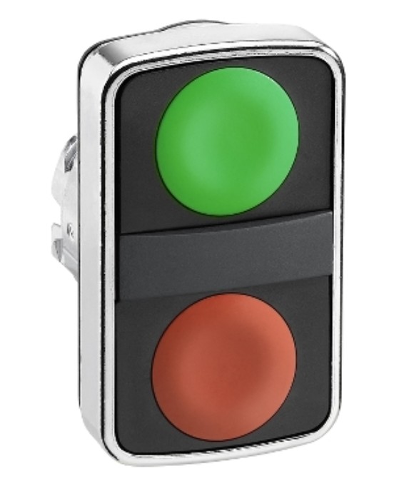Surunupp, 2 funkts. ZB4, ROHELINE/PUNANE, metall IP66, ilma adapterita, Schneider