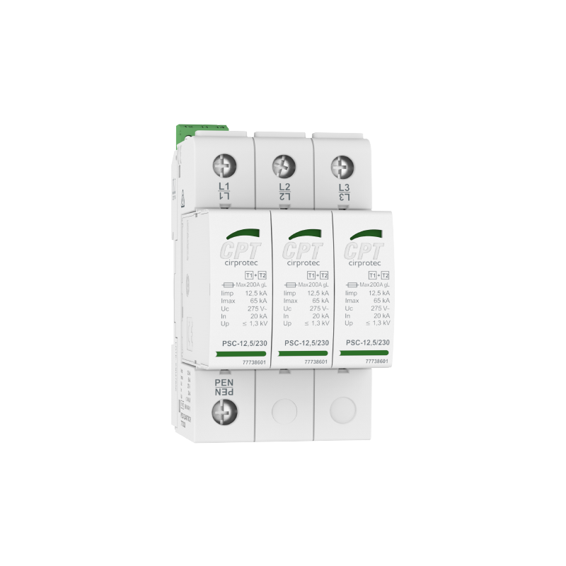 Liigpingepiirik PSC3-7.5/400 TNC tüüp 1+2 (B+C) 3P Iimp 7.5kA Imax 50kA Up1.3kV PLUG, Cirprotec