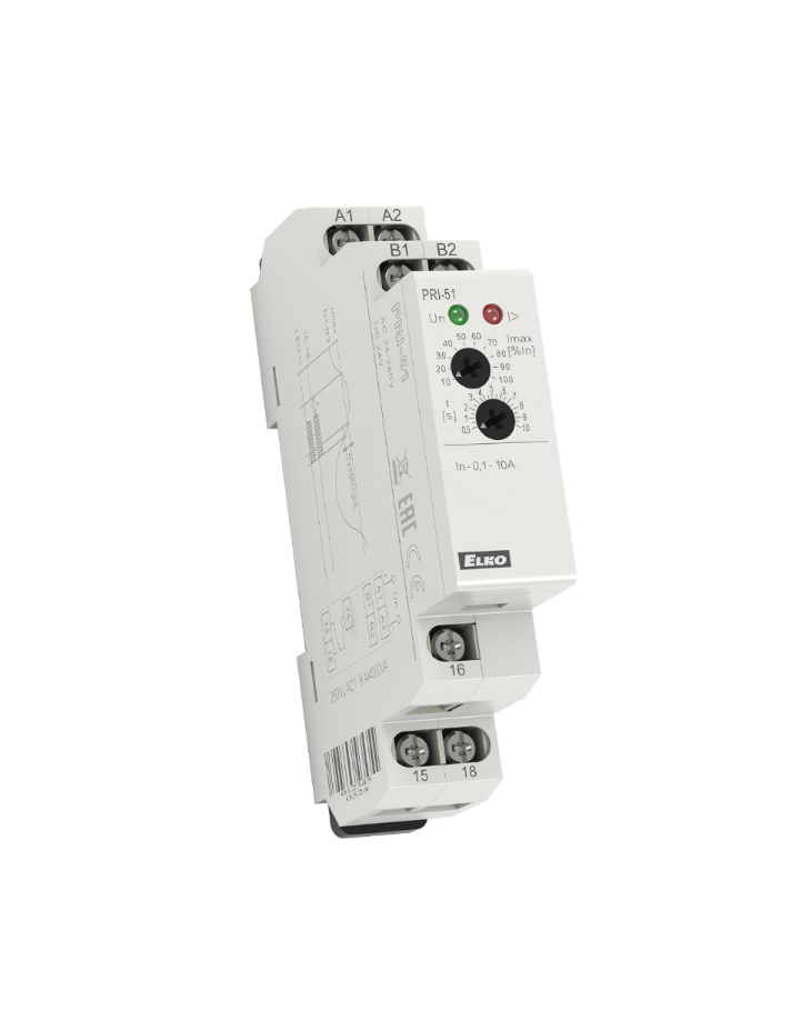 Voolukontrollirelee PRI-51, 1F, Max, 0.1-10A AC, 1CO, viivis 0.5-10sek, 24-240VAC, 24VDC, Elko