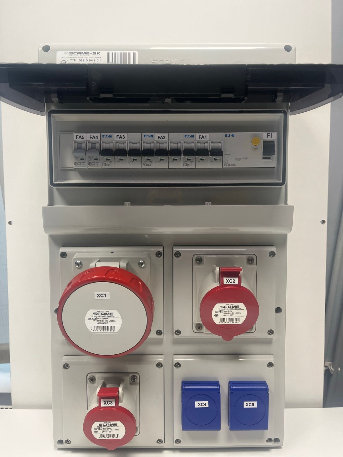 Vooluvõtukeskus 1x63A 5p, 1x32A 5p, 1x16A 5p, 2x230V, kaitseautomaadid ja rikkevool, 63A, IP44 SCAME